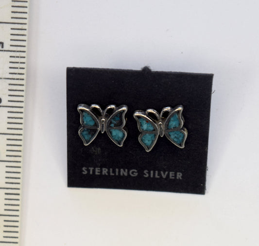 Butterfly Earrings with Turquoise inlay Sterling Silver Stud Earrings 9 mm wide